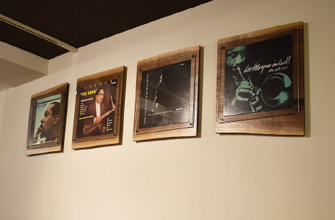 何tものからだを支えてきた、根元の力強さを感じる銘木に置かれたLPは、輝きを感じます。
