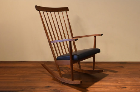 フルオーダーメイドシステム採用のロッキングチェアーです。お客様の身体を採寸し、究極の座り易さを目指しています。僅かな力で楽しく揺れるロッキングチェアーの座り心地を感じながら、ぜひご鑑賞下さい。