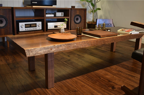 自然の力強さや美しさを感じる一枚板がオーディオルームにあるといいですね。