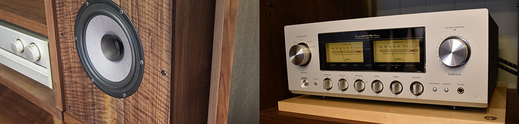 コンディションによって音の差が出ないよう、現行品の中から最大サイズのフルレンジを採用しました。Seas社はヨーロッパの有名スピーカーメーカーにユニットを提供する影の実力者です。 - アンプはプリメインアンプとし、これも最もシンプルで加飾のない音を目指し、純A級のLuxman L-550AXを現在接続しています。