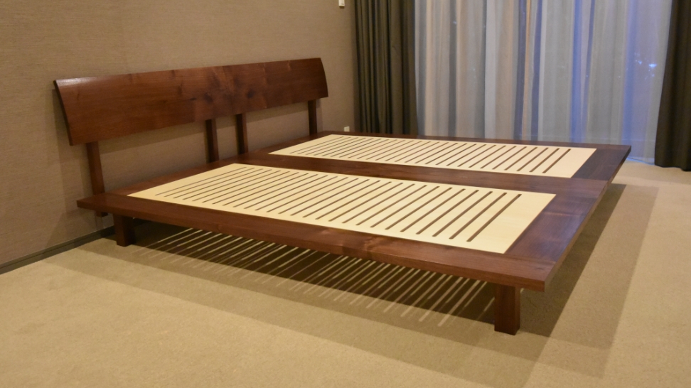 ブラックウォールナットを使用したシンプルな形のベッドフレーム