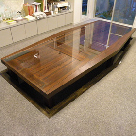 テーブルをお納めした際に、ご夫婦からあるご相談を受けました。100年以上前から代々使用してきたケヤキの文机。今や天板は曲がり、引き出しもなくなり、ベランダにひっそりと置かれていました。「丸い小さなローテーブルになりませんか?」とのご要望に答え、リメイクしました。「子供に受け継ぎたい」とのこと。これからまた100年以上使い続けられます。