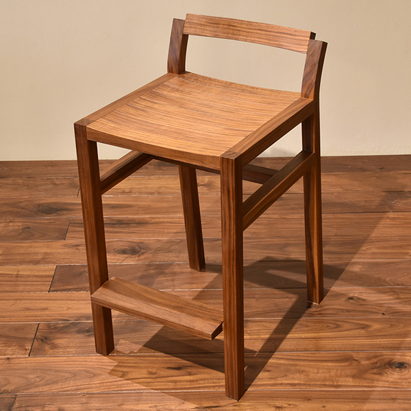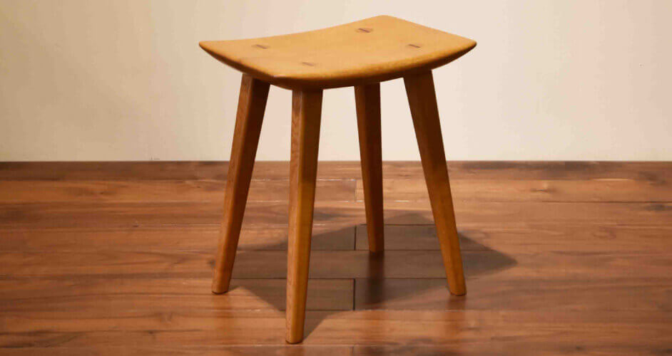 2作品目は脚物の基本となるスツールに挑戦します。強度やバランス、曲線や斜めの脚など、箱物とは違った要素が加わります。板からの木取に始まり、木づくりでは木工機械も使い始めます。用途の違ういろいろな鉋を使った座面の造形作業も加わり、プロレベルの知識や技術を多用しての制作になります。