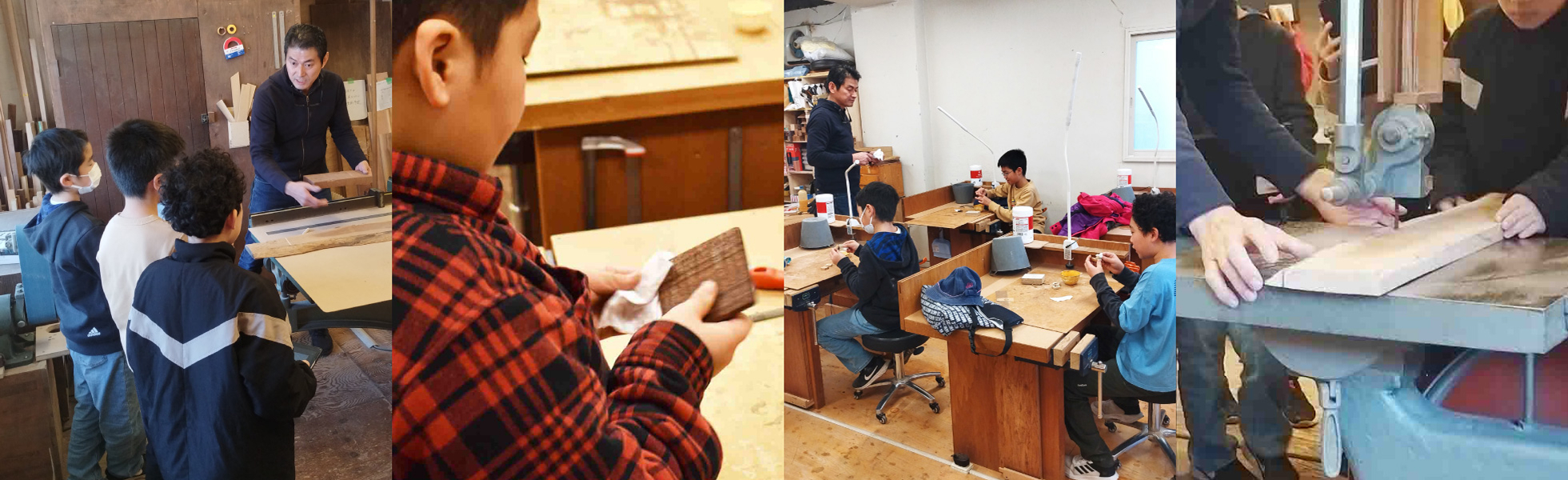 小学生や中学生の生徒には職業としての木工の魅力を伝えたり、マグネット・コースター・カッティングボードなどを題材にしながら、作品作りを体験をしていただけます。形を考え、切って、仕上げて、塗装する全ての工程を学べます。学生には作品作りだけでなく大工道具の使い方などもお伝えしています。