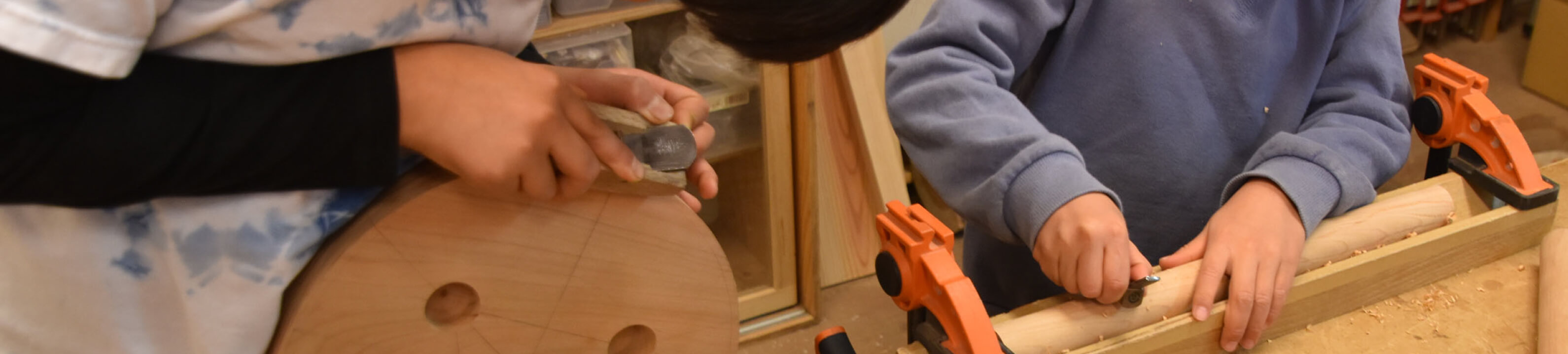 樹ニアコース(4・5・6年生)は、自分が使う生活道具を手道具を学びながら作りあげること、