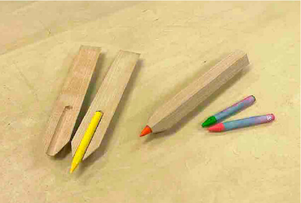 - 木材を使った身近な道具である鉛筆を観察し、自分の手で作りあげます。かんなや小刀で木を削り、ペーパーで素地調整し、塗装して仕上げます。手道具を使い本格的な木工体験の第一歩です。