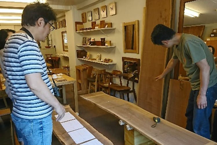 - 高校のクラスメートである岸君が家具職人になっていると再会した高校の友達に聞いていました。新居の家具に悩み、やはりオリジナルのものが作りたいと思ったときに、できれば縁のある人に頼みたいと思いました。夫も同じ気持ちだったので、工房にお邪魔しました。