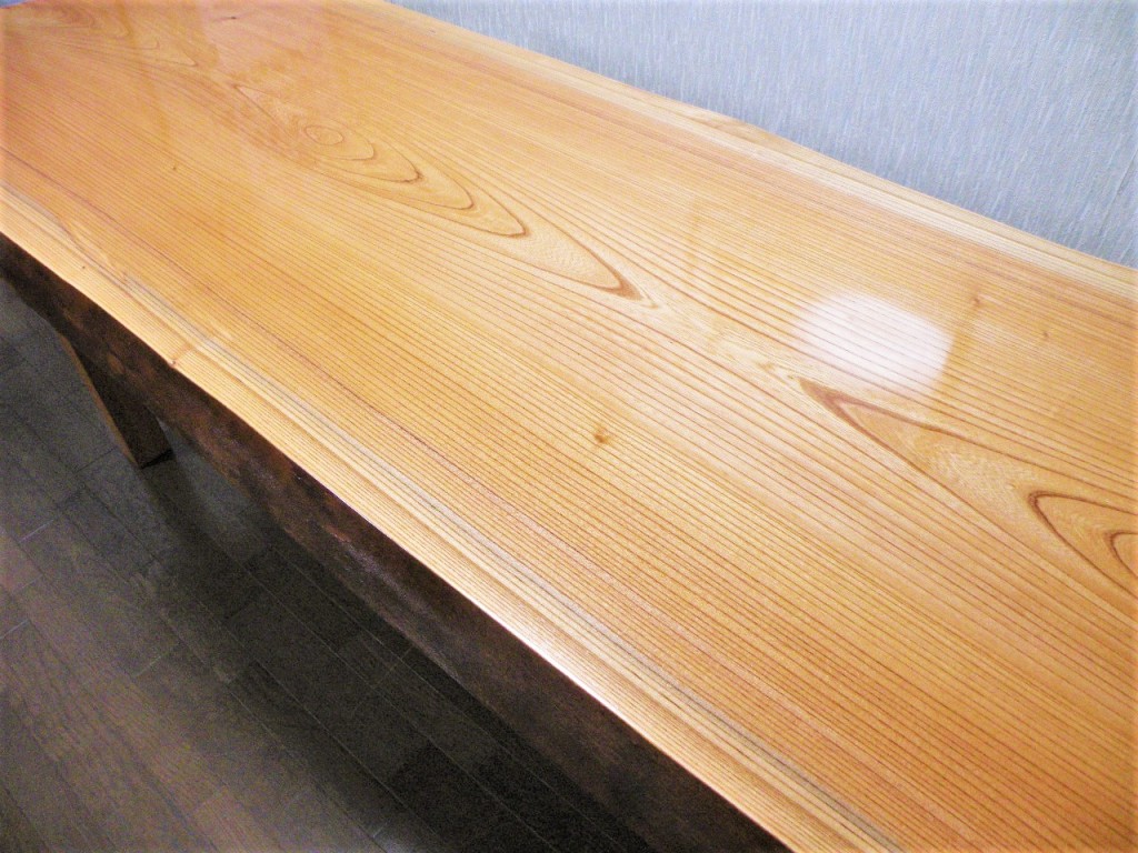 このケヤキの美しい木目がより引き立つ様、トップの塗装には程よい艶感を持たせました。