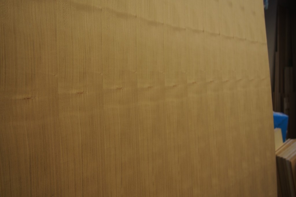 それを合板製造の工場へ持ち込み、サクラの化粧合板をオリジナルで作ってもらいました。