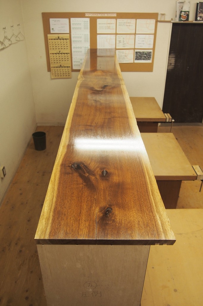 天板にも耳付きの一枚板を並列ブックマッチを使用。