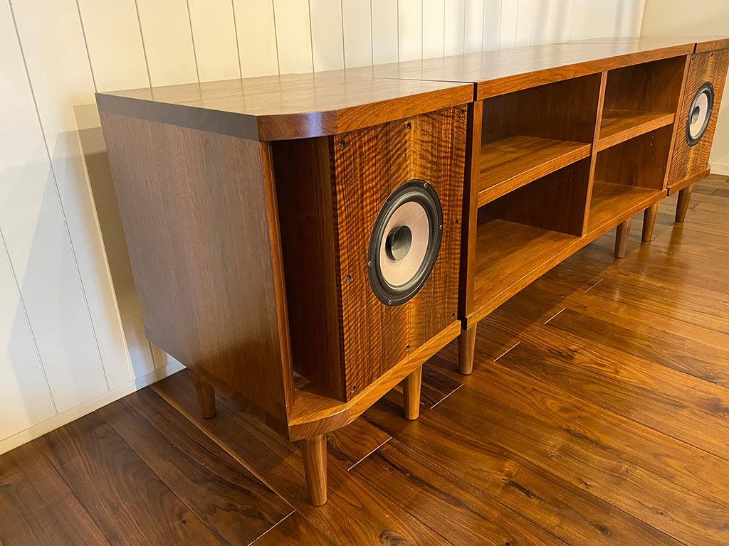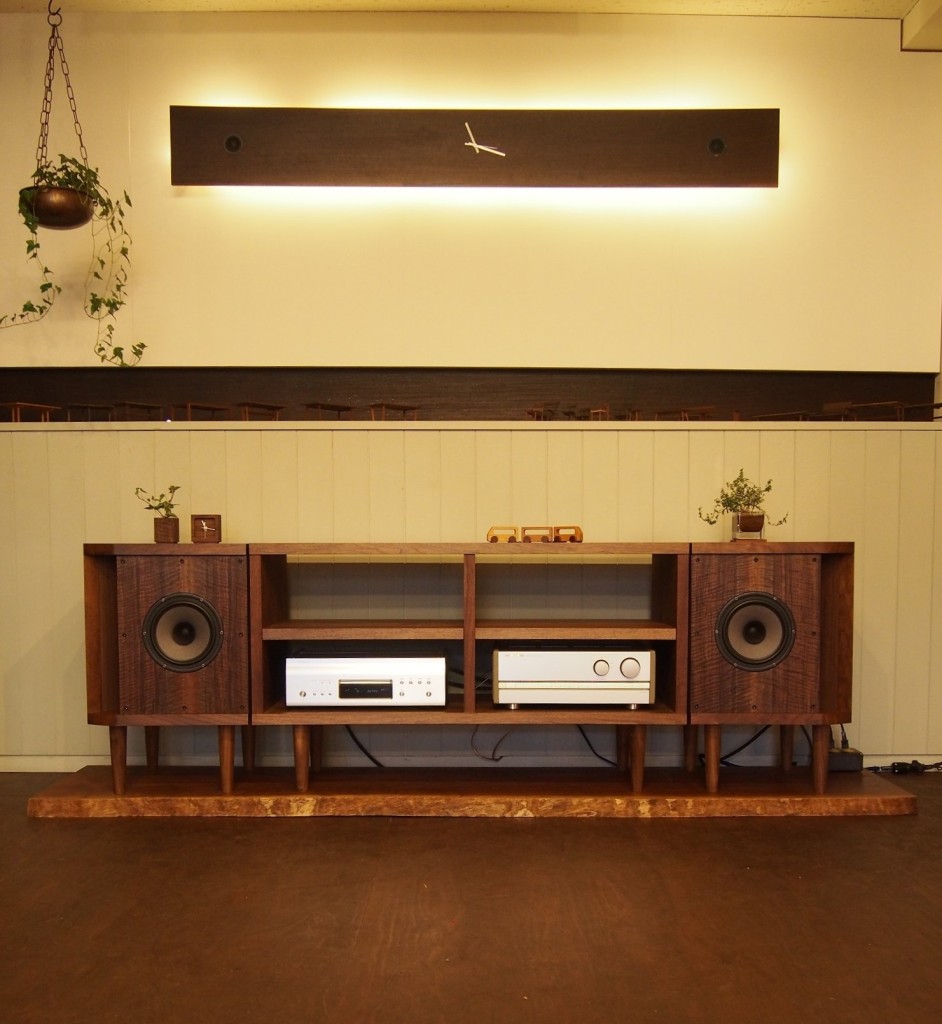 「無垢の音」にこだわったオーディオスピーカーと同材のオーディオラックをひとつのローボードとして制作しました。