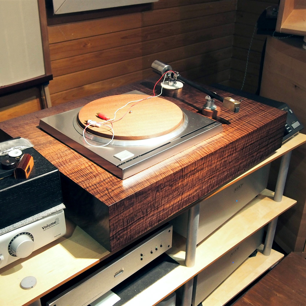 LPプレイヤーはLP盤の溝に刻まれた凸凹を正確に読み取っていかなくてはなりません。回転するターンテーブルを支えるケースは、実はとても重要です。様々な素材で製造されていますが、「無垢の木がもっとも良い」と聴き比べてきた結果、その考えにたどり着いている方たちがいます。