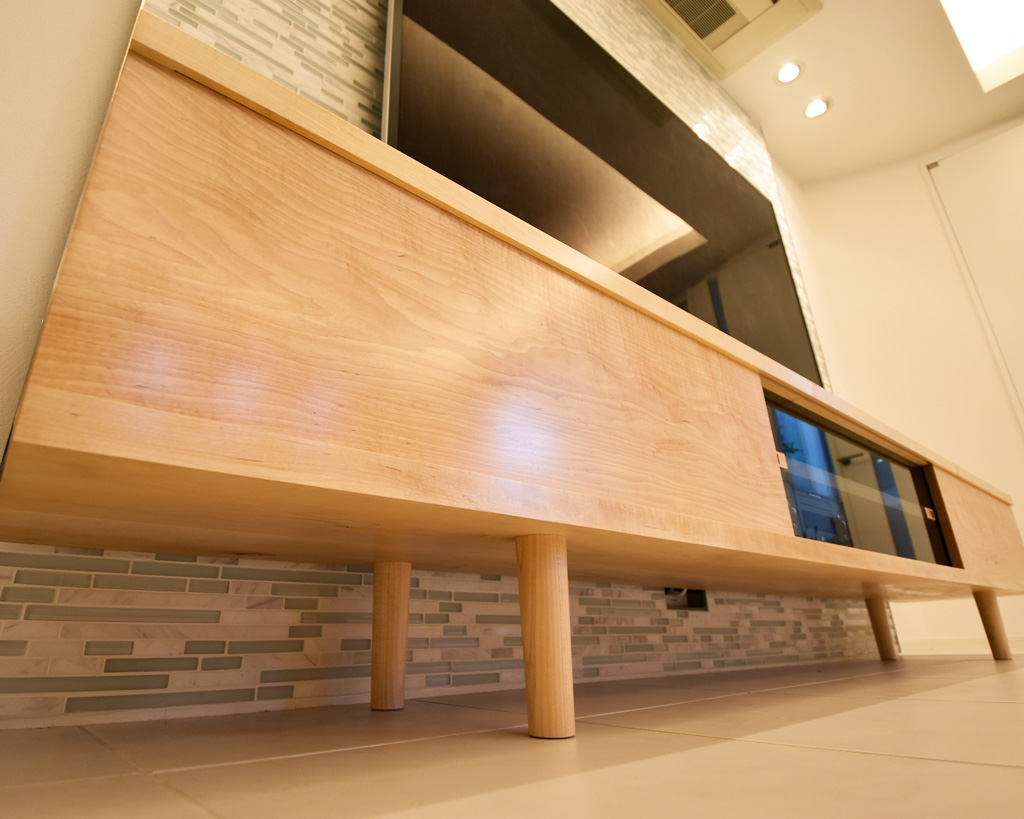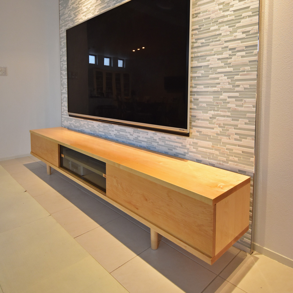 ハードメープルの無垢材を使用した、TVボードになります。