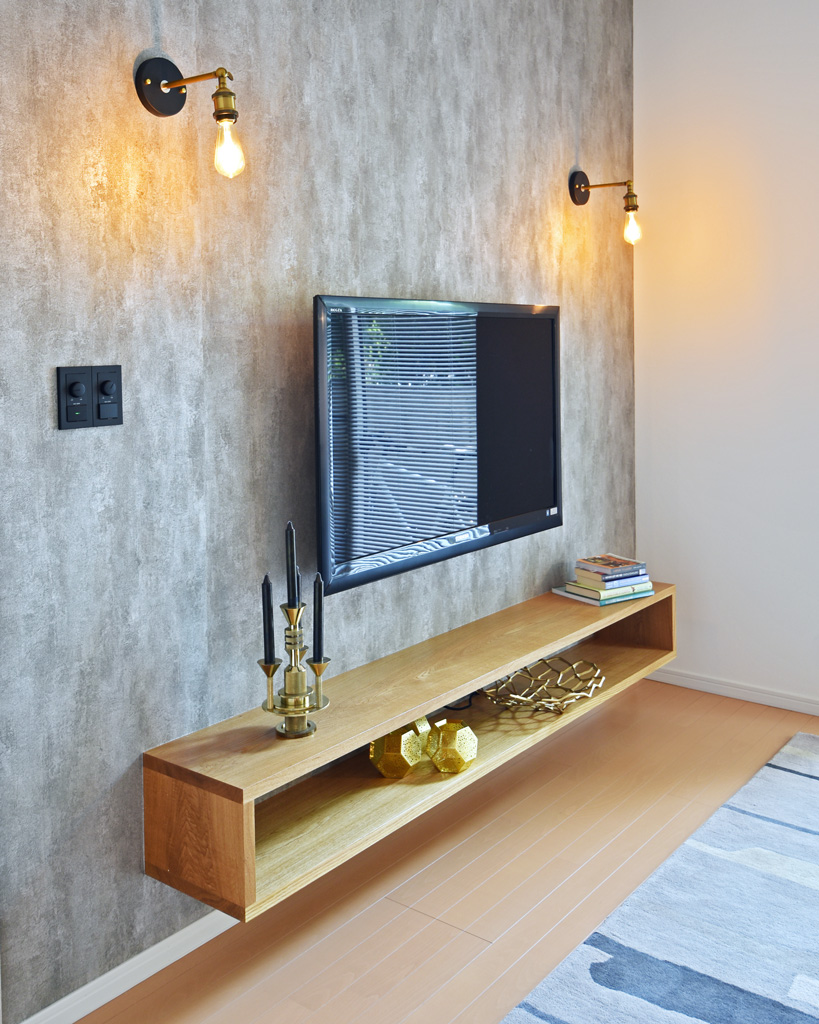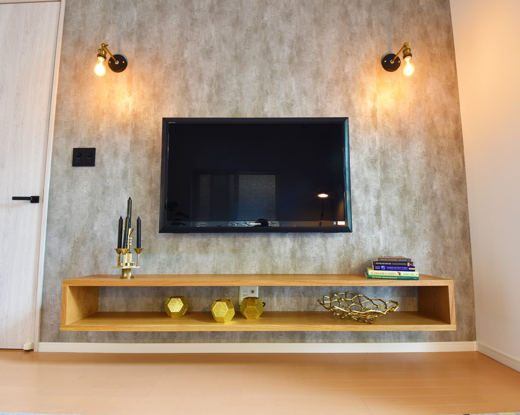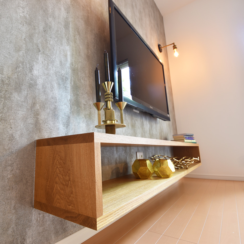 ナラの無垢材を使用した、とてもシンプルな壁面TVボードです。