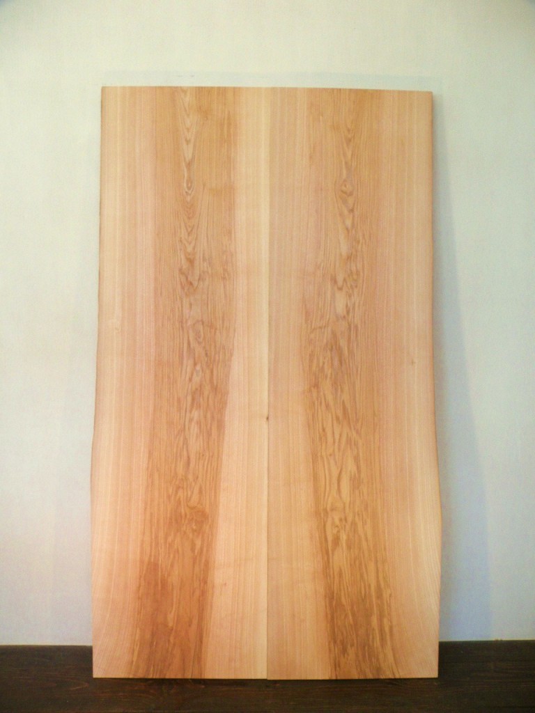 タモのテーブル天板(ブックマッチ2枚はぎ・無垢)L1800×W950~1100×D32