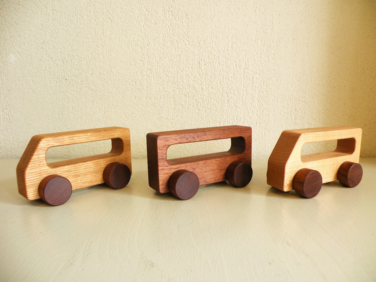 ひとつひとつは、木の車(くるま)として遊べます。