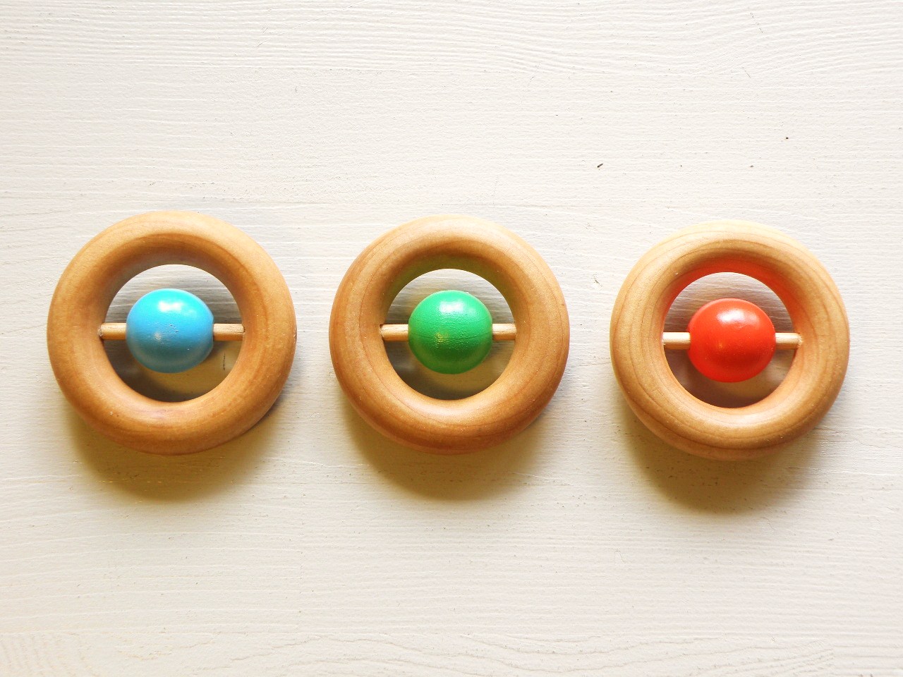 中の球を動かして、“ガラガラ”として遊べます。