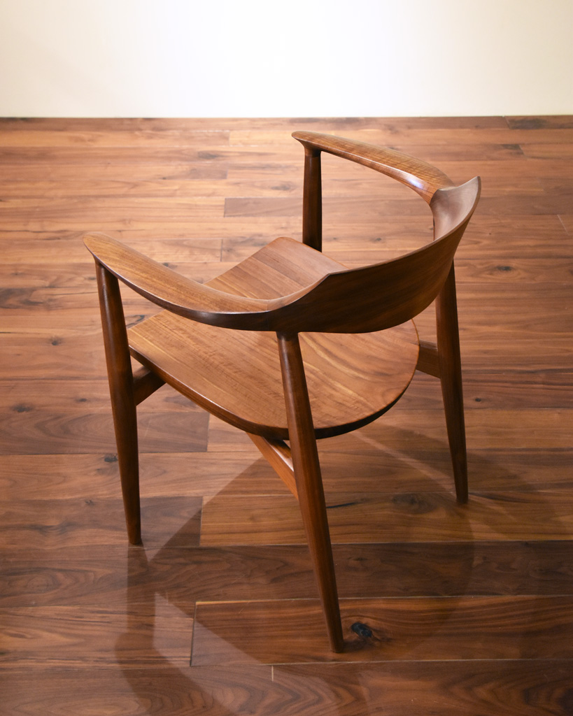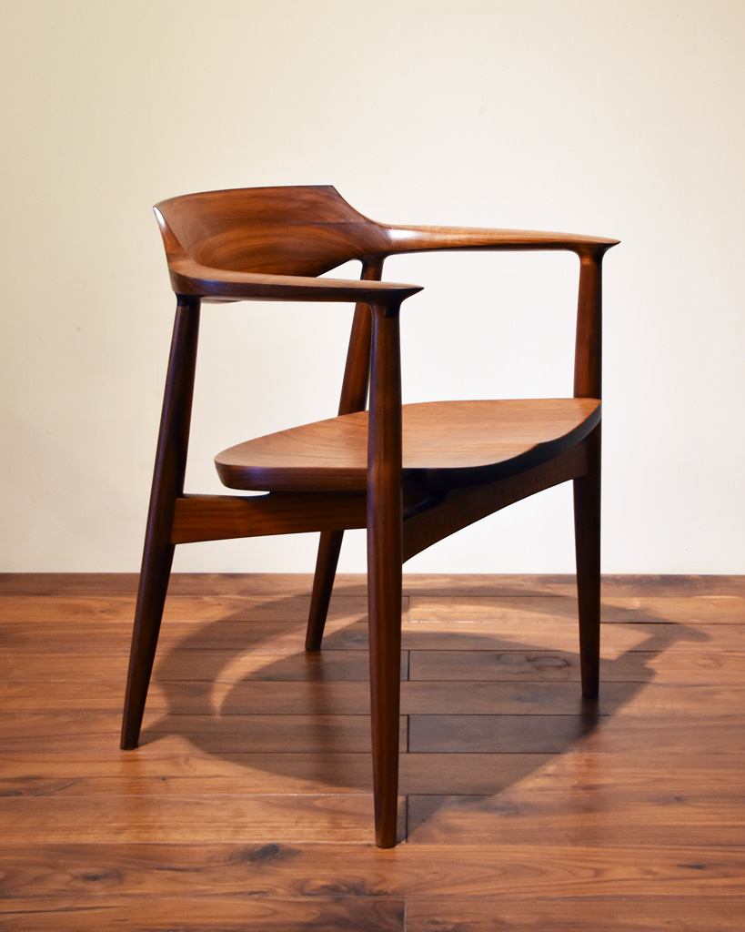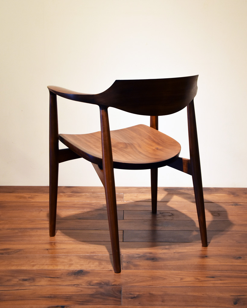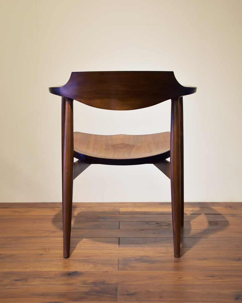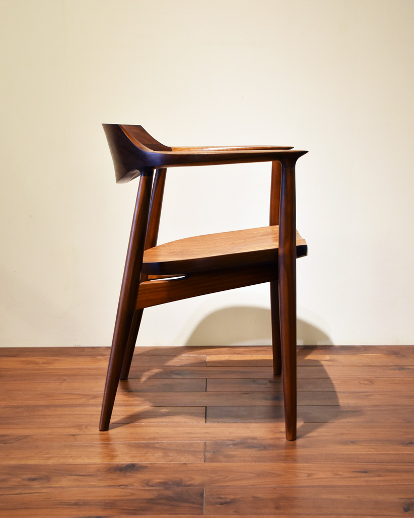 さらに全てを曲面だけで構成するのではなく、あえて背板や手掛けにエッジを持たせる事で、そのラインが強調され、シャープな仕上がりになります。