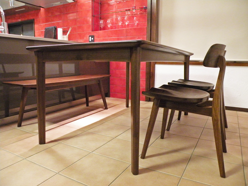 ブラックウォールナットのダイニングテーブルです。曲線美を意識して製作しました。