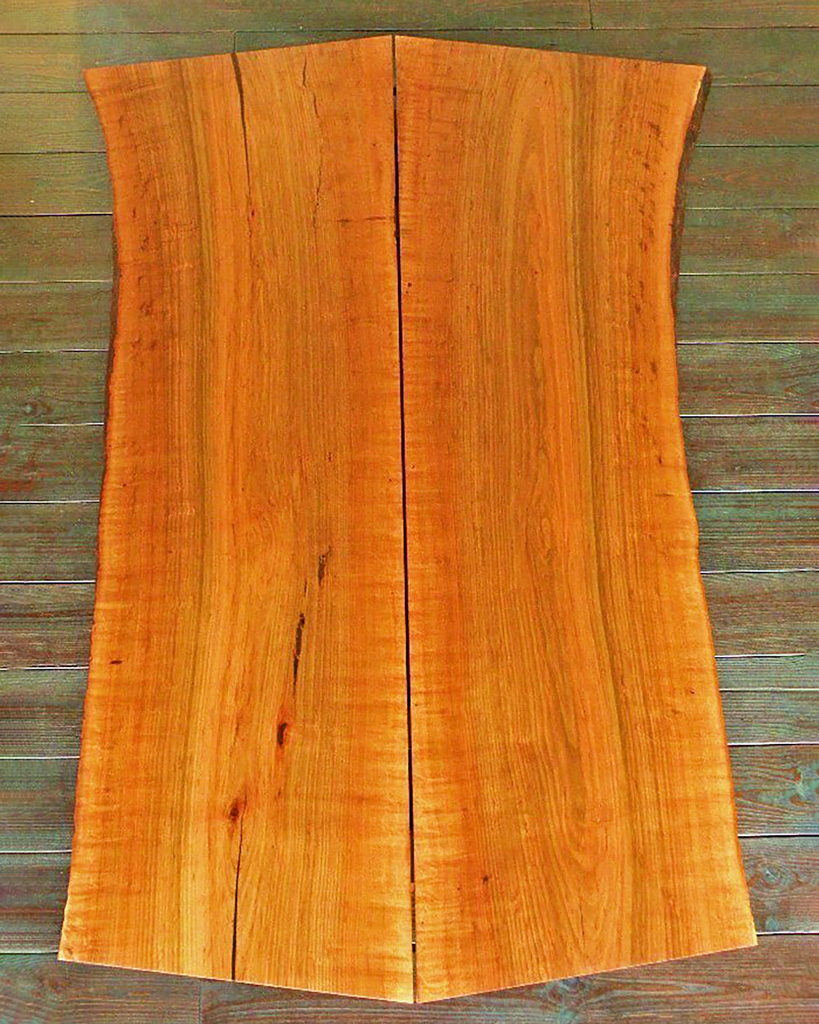 天板はブックマッチの2枚板、左右の木目が線対称になります。