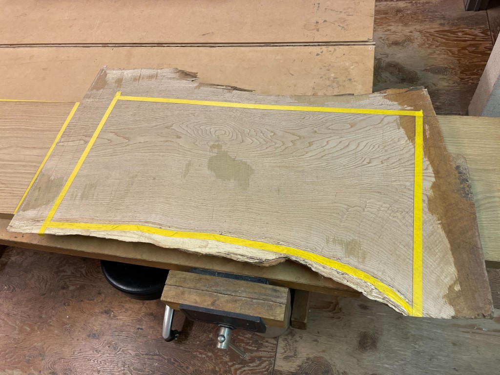 躍動感のある耳付きの板から切り出していきます。