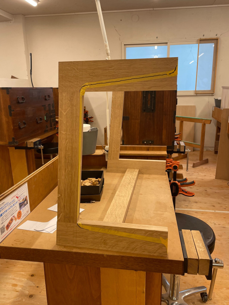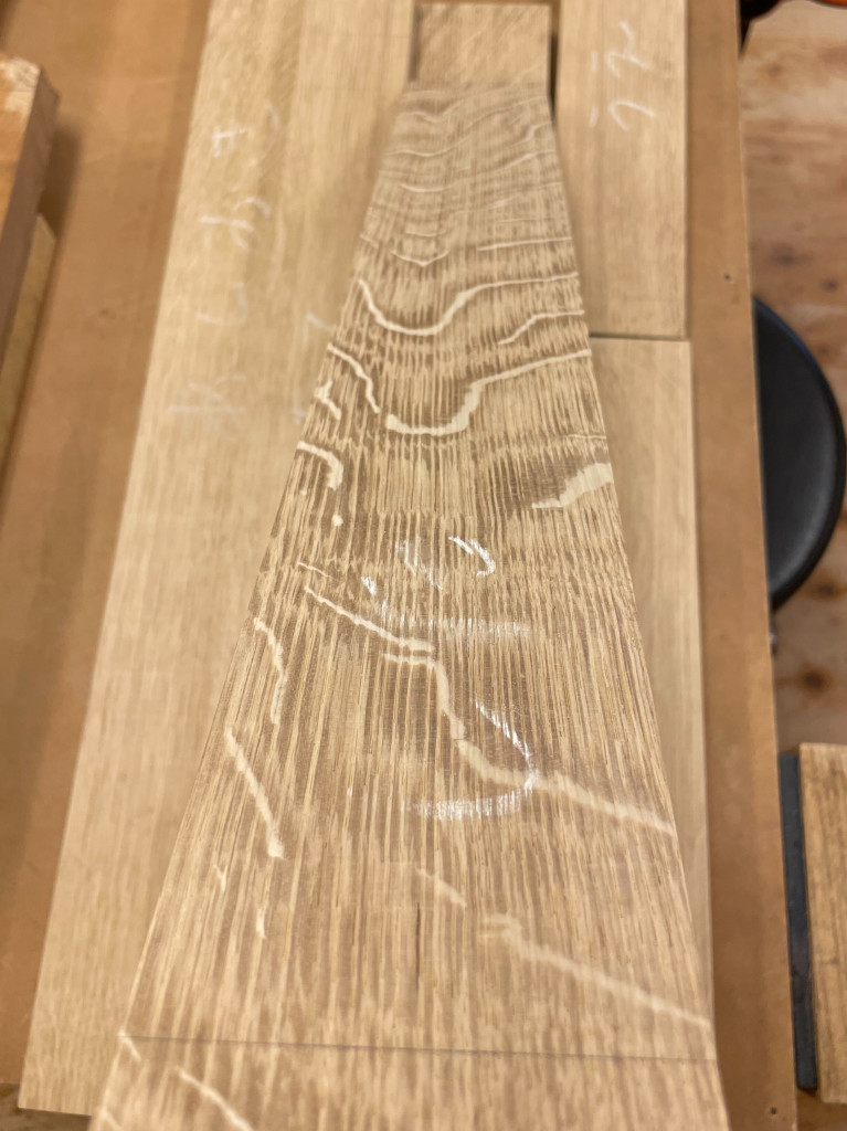 脚に使った材は、虎斑(ブナ科の木に現れる、虎の毛皮のような縞模様の杢目のこと)がよく入っていました。