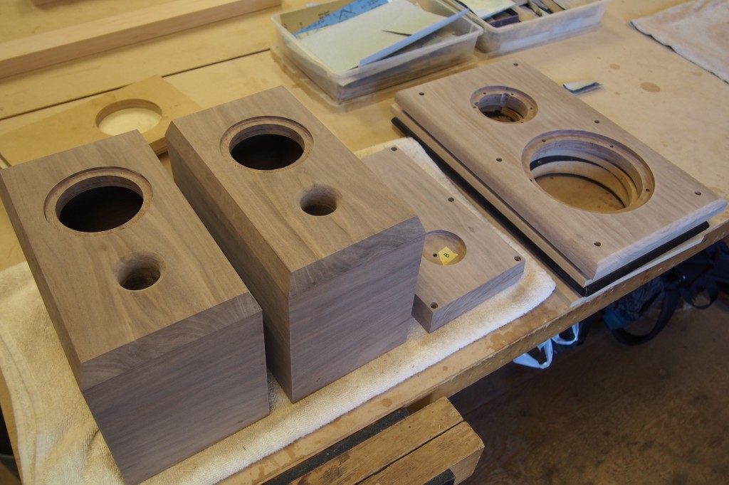 本体は当工房と音楽之友社様との共同制作のスピーカーを基本とし、ユニットに対する内部の体積などから寸法を割り出し、再設計していきます。