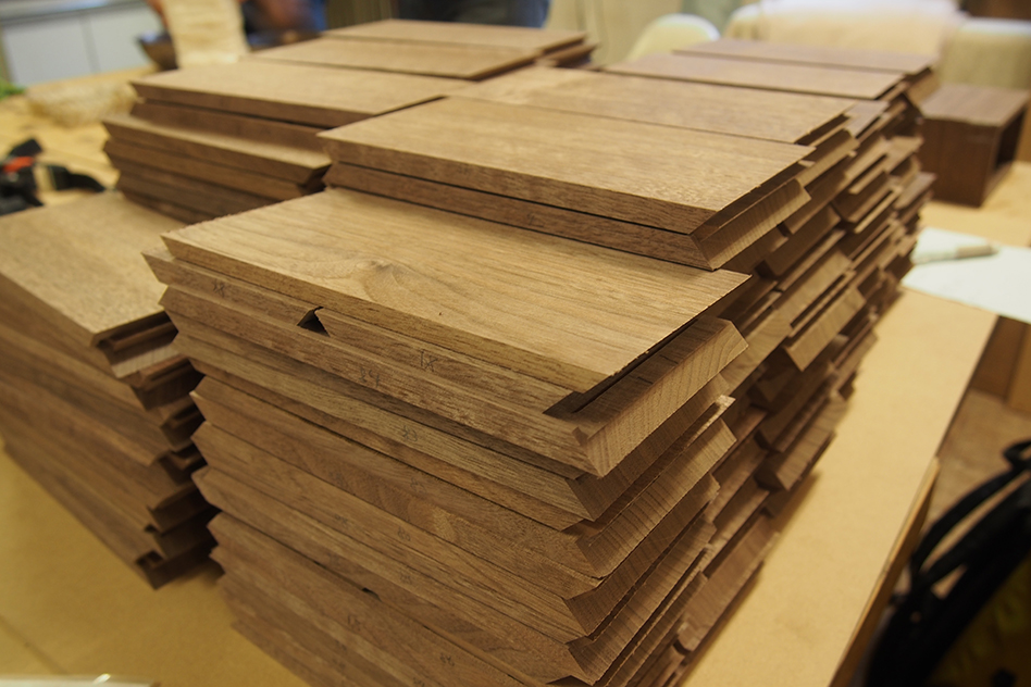 出来るだけ目の流れが平行に整うよう意識しながら、一枚の板となるよう、ひとつひとつ丁寧に材を切り出していきます。