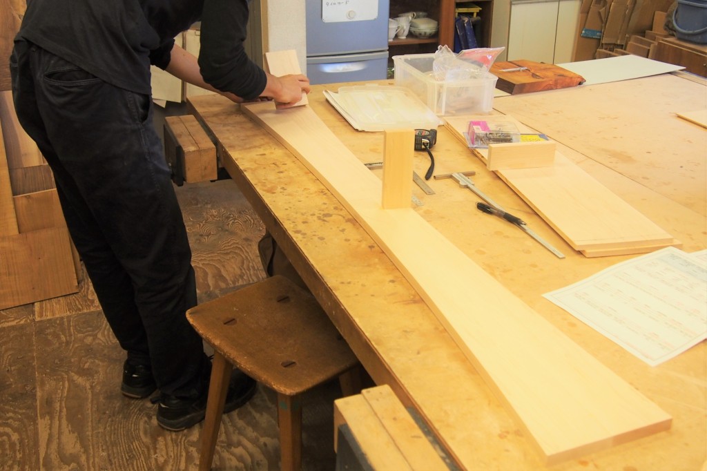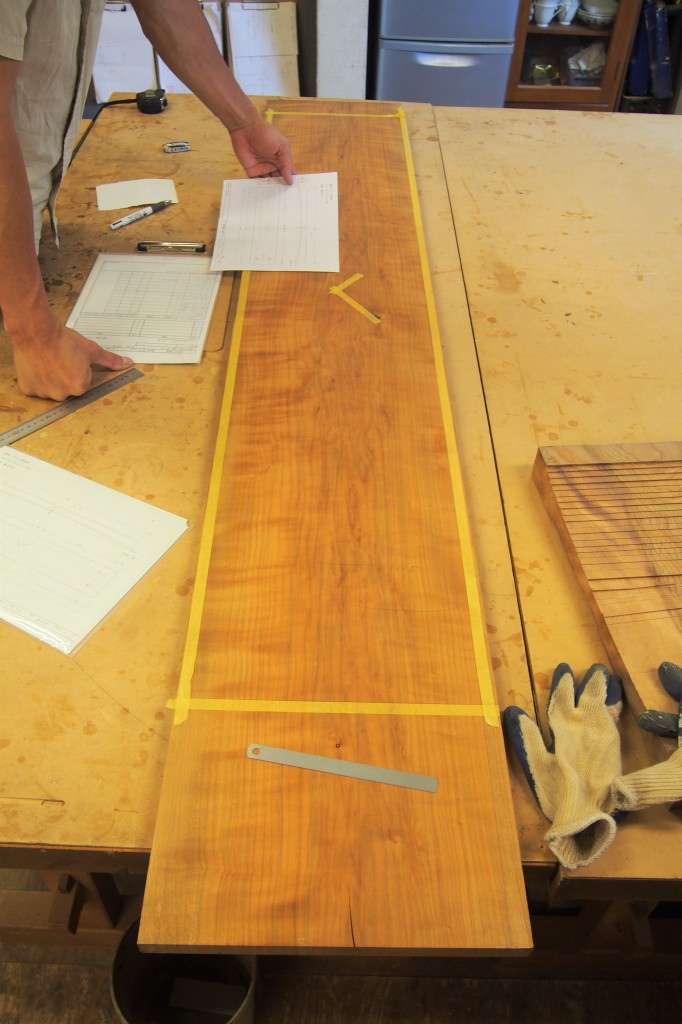 ご依頼主様は将来庭に桜の樹を植えたいという程の桜好きで、前回もサクラ材でのデスクの制作依頼でした。