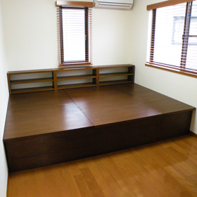 オーダーメイド家具 ツイン・収納ベッド&飾棚【楢/ナラ】無垢材 他