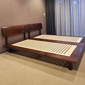 オーダーメイド家具 ツイン・シングルベッド【ブラックウォールナット】無垢