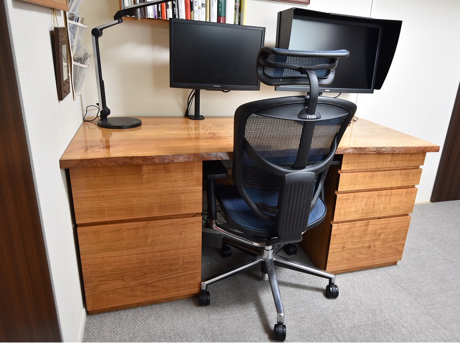 オーダーメイド家具 デスク【桜/サクラ】無垢 ブックマッチ仕様