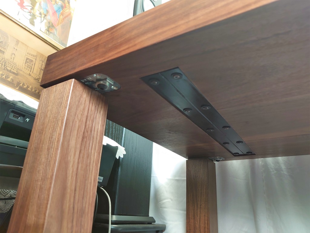 掘り込み加工などが必要になりますが、使用時は金属同士でジョイントされるので、長い年月が経ってネジ周りが崩れて脚が揺れる、といったことが起こりにくいのが特徴です。