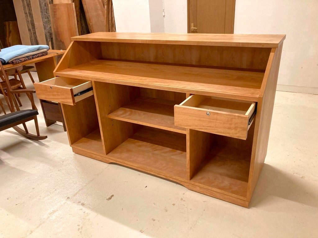 左右に引き出し2杯と中央に可動棚を設け、機能的にも充実したカウンターになりました。