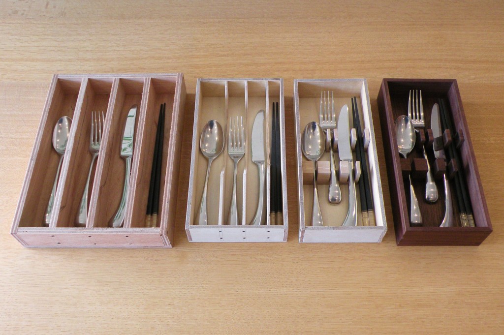 ナイフ・フォーク・スプーン・箸が入るカトラリーを制作しました。