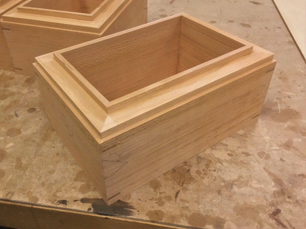 小箱のわりには厚みのある板ですので、留め接着は精度と接着時の正確な圧締が不可欠です。