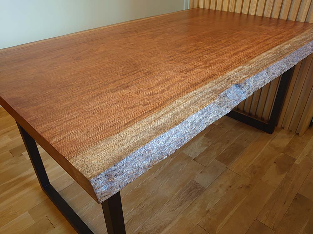 脚はシンプルな鉄脚を採用しました。1人ではとても持ちあげることができないくらい非常に重たい花梨の天板をガッチリ支えてくれます。