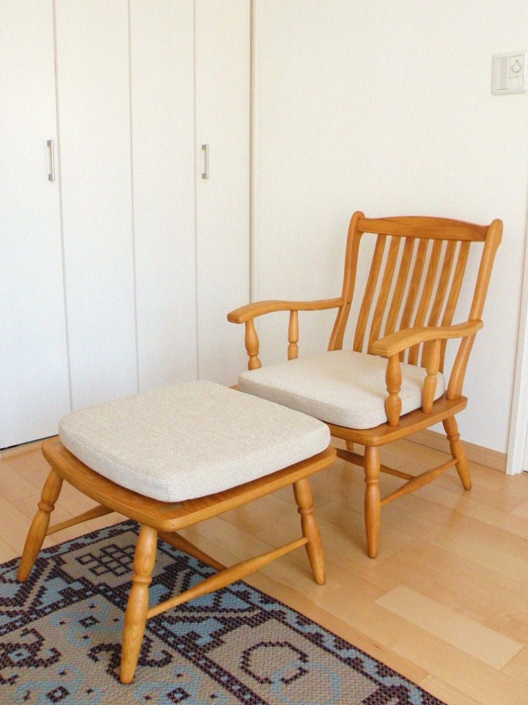 ひとつの椅子はオットマンとして再利用したいとのこと。
