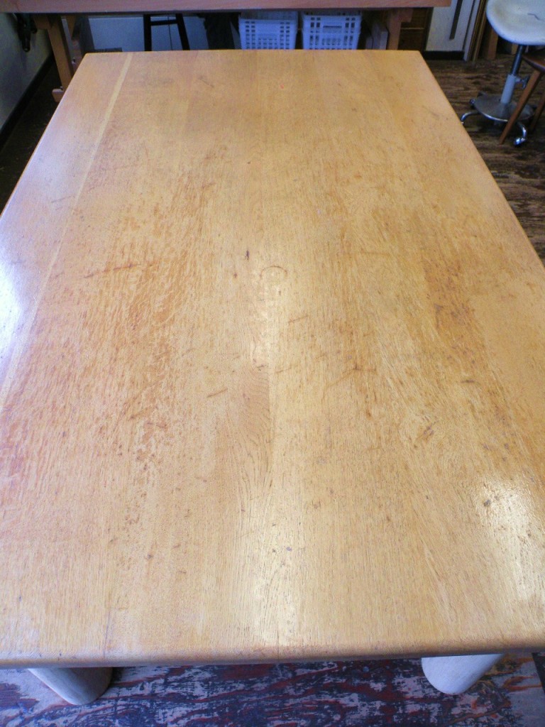 ダイニングテーブル:割れ、反り、全体に傷みあり