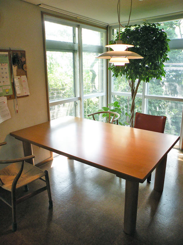 ミズナラ柾目の無垢材で2m×1mの大きなテーブルです。