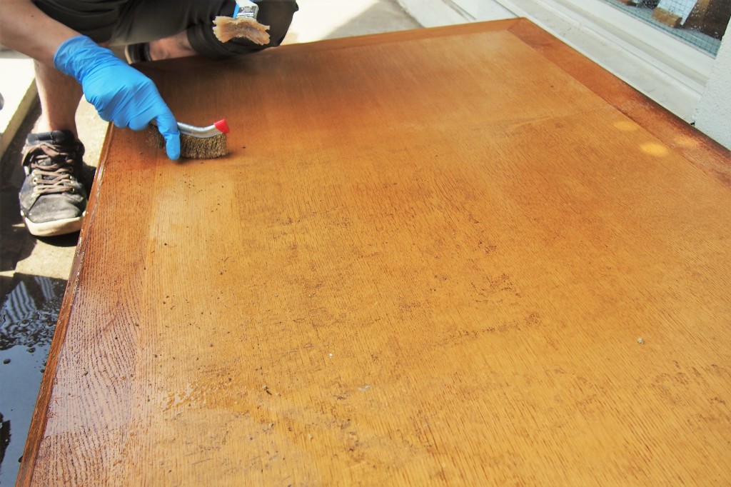このデスクは元はクリア塗装で仕上げられたものでした。