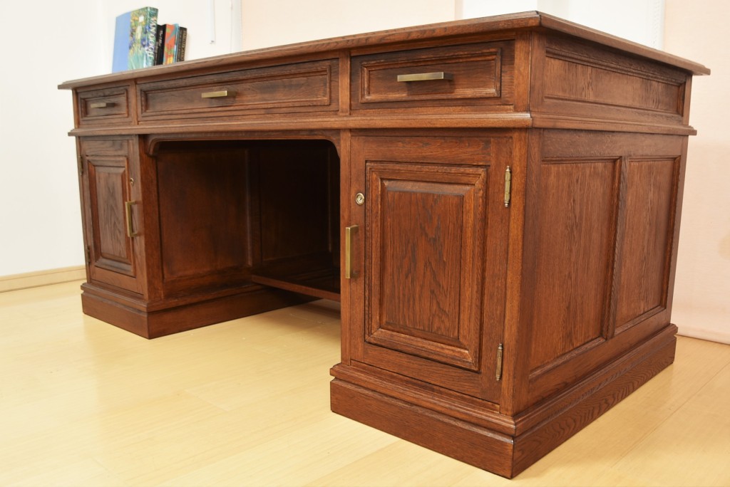 大きな袖付きデスクの修繕と再塗装です。