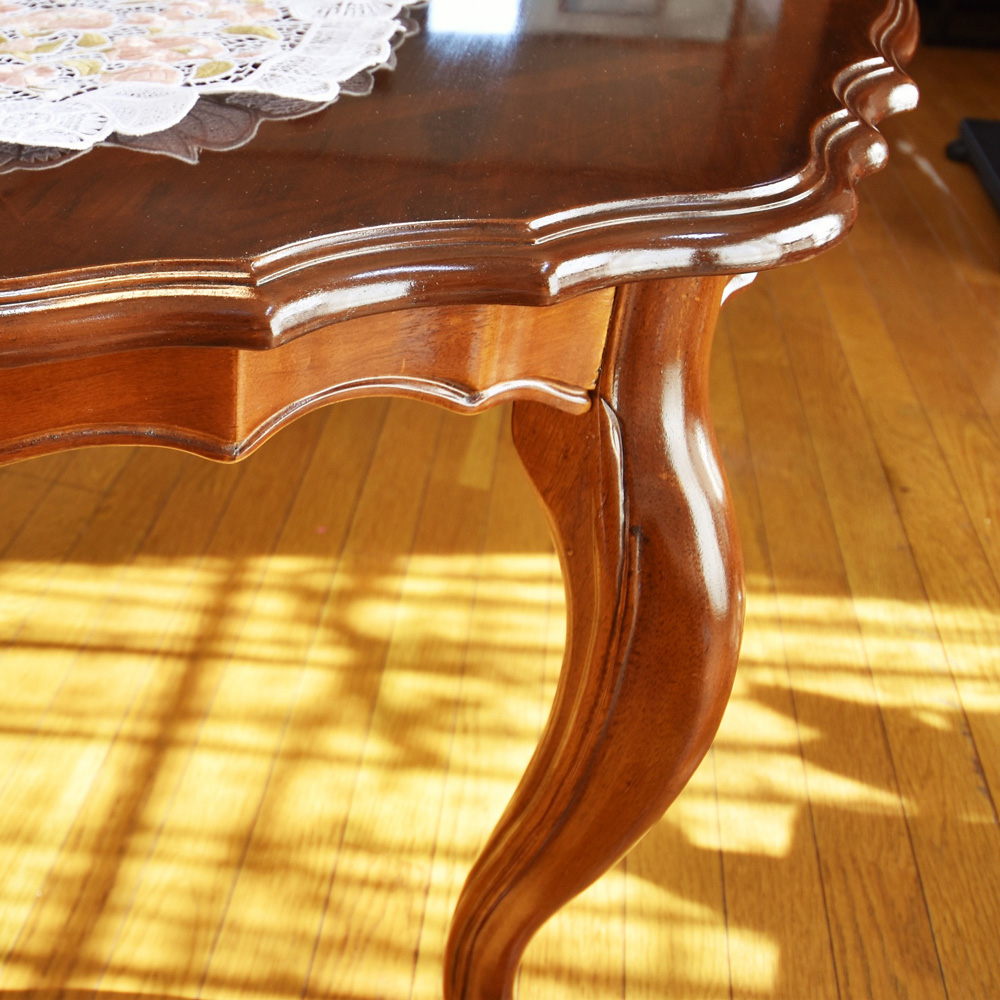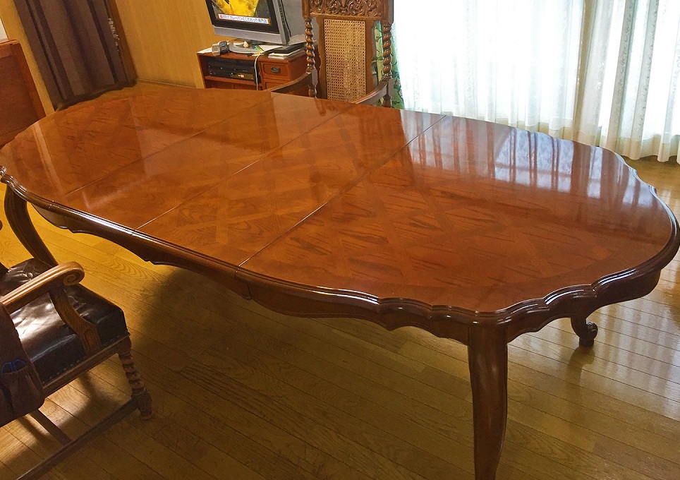 20年ほど前に購入されたアンティーク風のエクステンションテーブルの修理・修繕・再塗装のご依頼です。