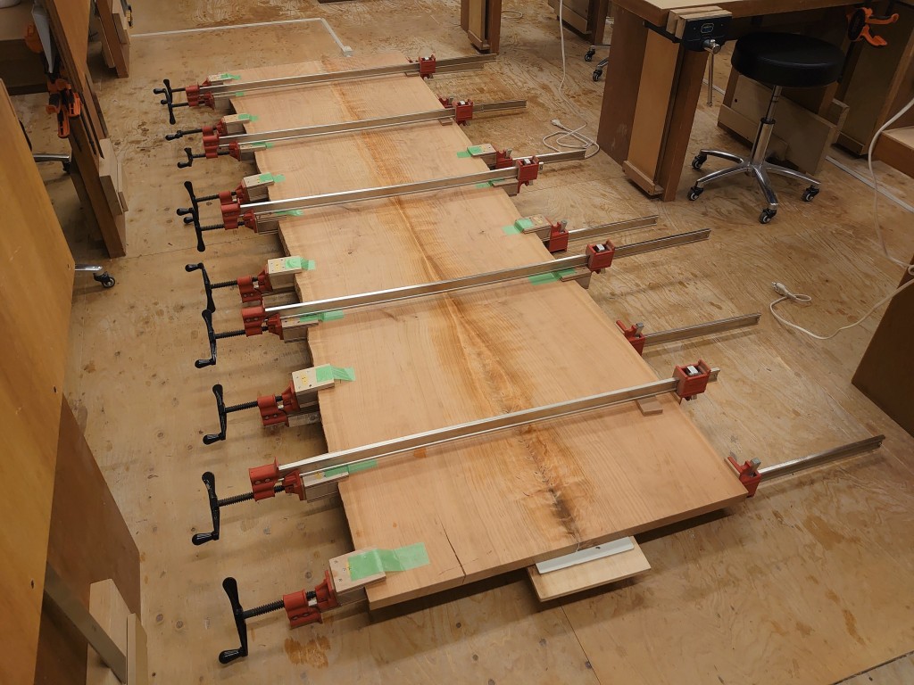 天板はそれぞれ2枚ハギのブックマッチと3枚ハギで制作します。