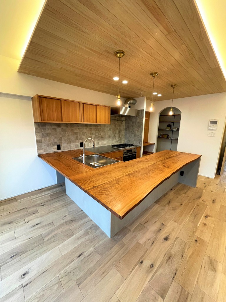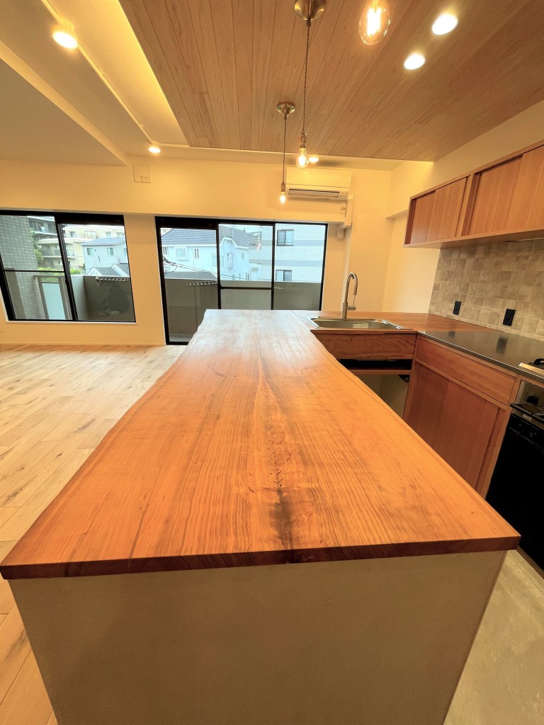 L字型のキッチンで、お客様が無垢材でカウンター制作をご希望されているということで、当工房へお声掛けいただきました。