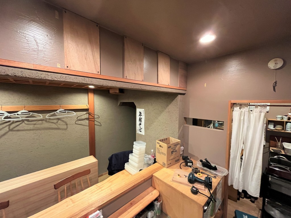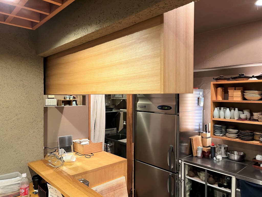収納下のカウンターや、その他の木部とも統一感があり、お店の雰囲気にも馴染んでいるのではないでしょうか。