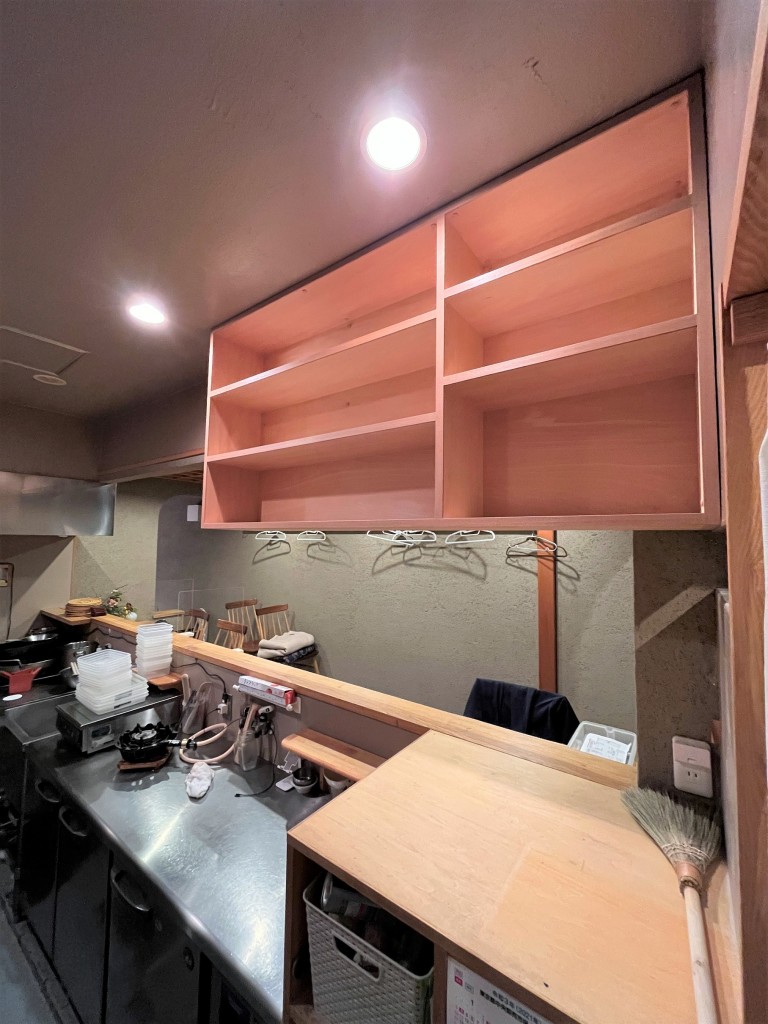 弊社工房近くで飲食店を営むご主人様から、厨房に収納を設置したいというご依頼を頂きました。