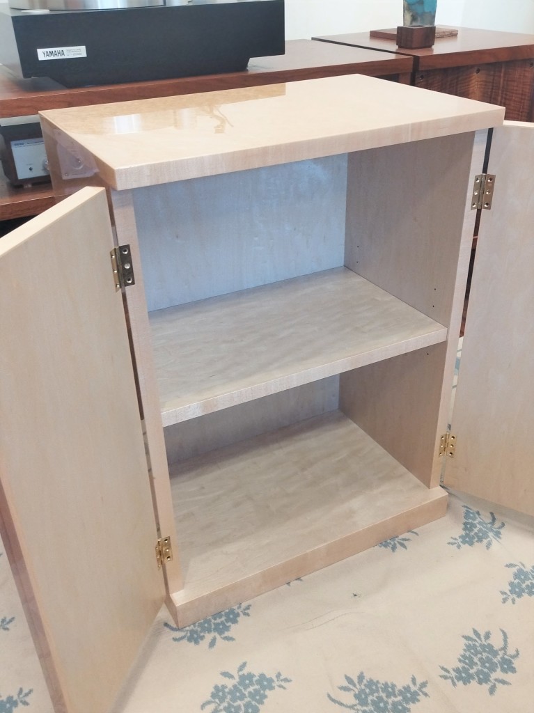 全面にバーズアイメープルを使用した贅沢な観音扉収納です。