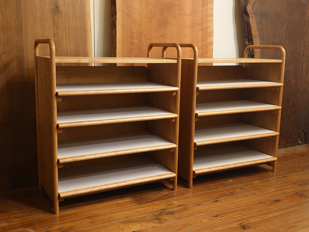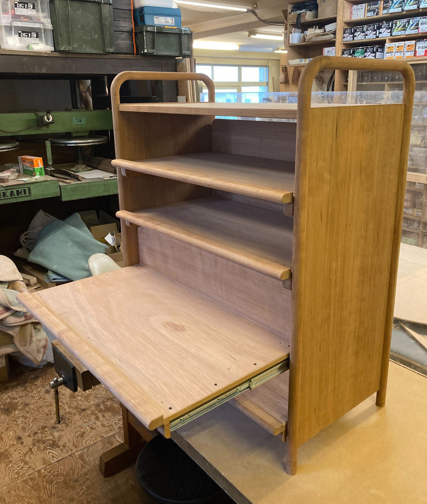 収納棚としてなかなか無いものですが、オーダーメイドならではの形で作り甲斐がありました。
