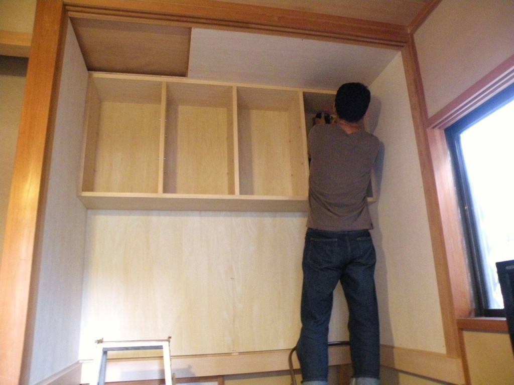 こうした隙間に制作する場合、最も大変なことは押し入れ内の補強と、サイズ出しです。